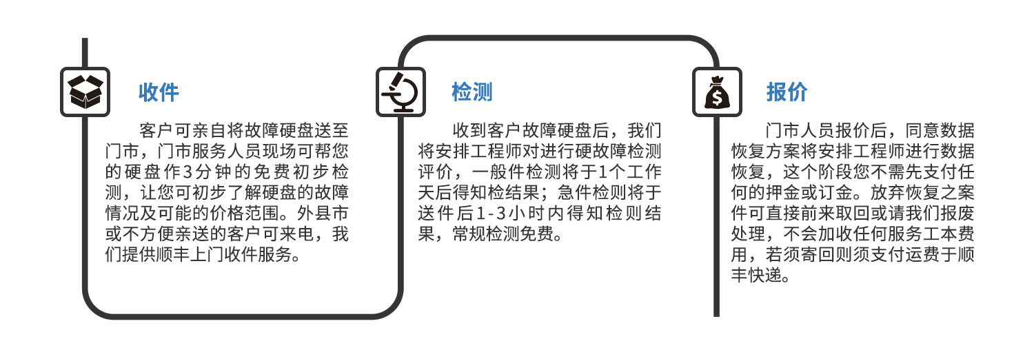 在北京,上海,杭州,深圳,武漢,沈陽等城市設立全國連鎖數據恢復服務,主營業務:硬盤數據恢復、服務器數據恢復,電腦數據恢復、數據修復、硬盤維修、raid、U盤、SSD、數據庫修復、開盤數據恢復...等,解決各種軟硬件引起的數據丟失疑難雜癥,公司秉承客戶服務至上原則,免費檢測,明碼標價,數據恢復不成功不收費!